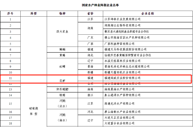 重磅!闽威实业入选国家首批水产种业阵型企业