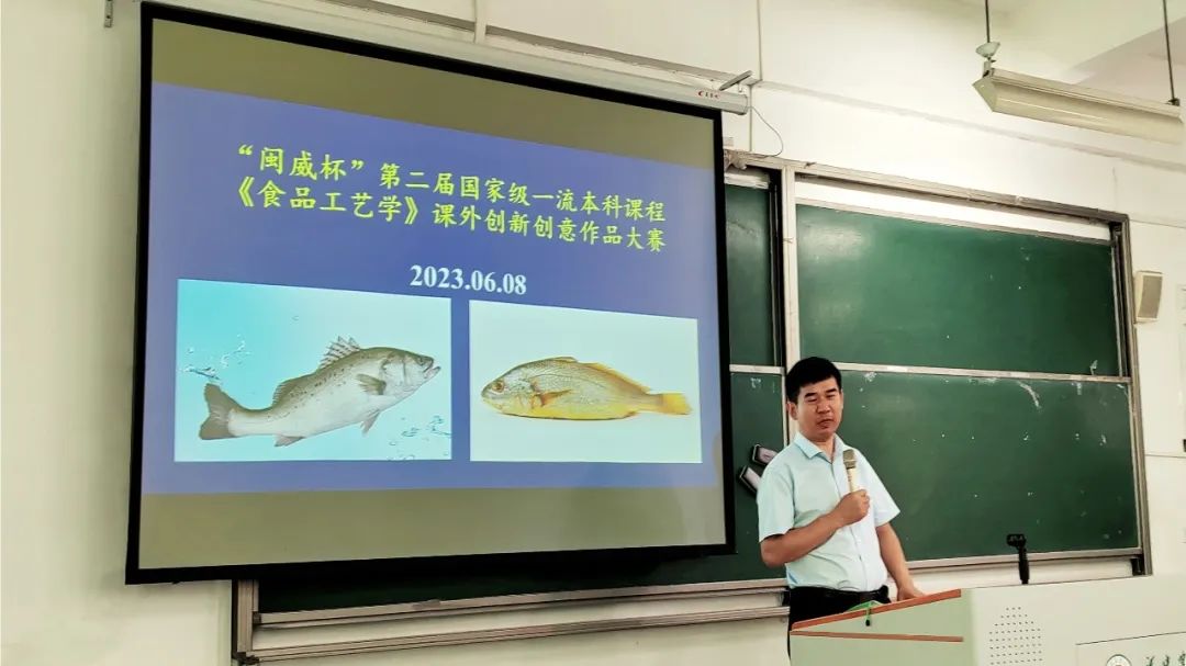 6月8日,在福建省食品工业协会、福建闽威食品有限公司的支持下,福建农林大学食品科学学院《食品工艺学》教学团队举办了“闽威杯”第二届国家级一流本科课程《食品工艺学》课外创新创意作品大赛。大赛以“践行大食物观,推进海水鱼加工绿色发展”为主题,以大黄鱼、鲈鱼等海水鱼为原料,利用《食品工艺学》知识设计新产品。公司副总经理陈小辉受邀出席了本次大赛。