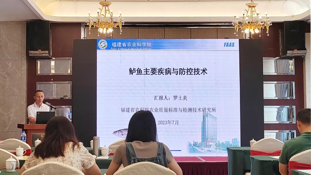 7月21日,国家海水鱼产业技术体系漳州综合试验站、福鼎鲈鱼科技小院在福鼎市东源大酒店举办“花鲈疾病防控技术培训会”,邀请了福建省水产技术推广总站李水根站长、福建省农业科学院罗土炎研究员等领导专家到场指导。相关企业及养殖户共计60人参与培训。