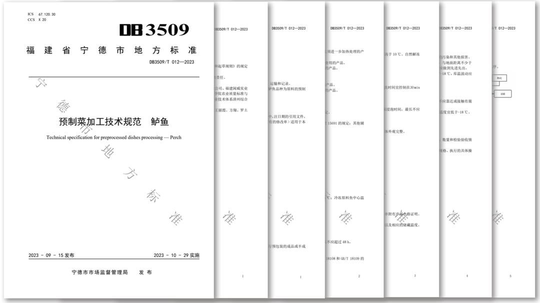 10月29日,宁德市地方标准《预制菜加工技术规范 鲈鱼》(DB3509/T 012—2023)正式实施。